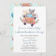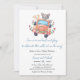 Adorable baby shower invitation featuring an adorable grey wolf, and a festive creamsicle-coloured car. This invitation is perfect to celebrate the soon-to-be parents of a baby boy. (c) KaliValy