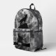 Howling Wolf smoke silhouette geometric abstract Monogram Printed Backpack. Personalise with your custom initial and name. Cool fashion accessory bag for him. Create a unique and personalised backpack with a custom touch!