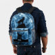 Howling Wolf abstract blue black Monogram Printed Backpack