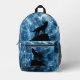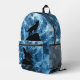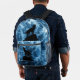 Howling Wolf blue sparkly smoke silhouette geometric abstract. Cool fashion accessory bag for him. Create a unique and personalised backpack with a custom touch!
