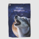 Howling wolf. Detailed photo realistic AI painting, detailed soft looking fur. With a full moon and stars in the background. Customise it with a name.
