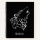 Vector tribal of a howling wolf in silver on a black background. Customise it with your name or text.