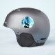 Abstract geometric winter snowy blue and white smoke with black wolf silhouette.