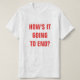 A simple design with the text, 'How's it going to end?', in red on a white background. Feel free to change the font, colours and text size :)