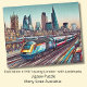Illustration of an HST Train leaving London with various London Landmarks in the background, Puzzle - see my store for more great Train Gifts