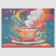 A playful design featuring a charming cup of coffee with whimsical details, perfect for adding warmth and a touch of fun to kitchen or café-inspired spaces.