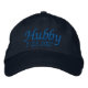 Custom Embroidered Alternative Apparel Basic Adjustable Baseball Cap Hat in Dark Navy Blue Colour with Hubby in Royal Blue text typography lettering and digital graphic design by TheFabricSeal print on demand shop at Zazzle.com #ZazzleMade https://www.zazzle.com/store/thefabricseal TheFabricSeal©️Original.