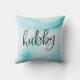 Hubby hand-lettered aqua blue watercolour pillow
