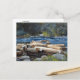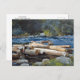A fine art postcard featuring - The Hudson River (1892) by the American artist Winslow Homer (1836-1910). An Adirondacks landscape depicting a man observing deer in the distance behind a pile of logs.