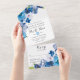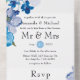 Pastel shades of blue floral wedding invitation with tearaway rsvp slip designed to be quickly and easily customised to your event specifics.