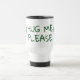 Travel mug design features an original marker illustration of a prickly green cactus, with HUG ME PLEASE in a fun font. A great gift for your favourite gardener.