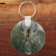 This custom button keychain features a large yellow and black Argiope spider on her web. The zigzag band running vertically through the middle of the web is from the male spider. There is a natural multi-green background, behind the spider and web. This spider is featured on many products and makes the perfect gift for the spider lover in your life.