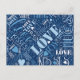 this postcard has a text design with hearts, hugs, kisses and love that is perfect for gifting at any time of the year. Available in several colour palettes, this example has beautiful typography in shades of blue and white on your choice of background colour. Search ID286 to see other colour options and matching products with this design.