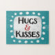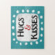 "Hugs & Kisses" is a cute inspirational or motivational quote with a white accent shape surrounded by white textured whimsical dots.