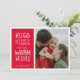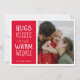 Hugs Kisses Warm Wishes Cute Simple Red One Photo Holiday Card
