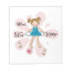 A cute big sister design features a little brown haired girl with pig tails with her hula hoop on a pink flower background. New big sister T-shirts, cards, stickers, tote bags, magnets, mugs, pillows, luggage tags, iPhone cases, and much more!