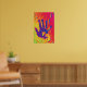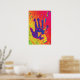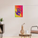 This brighter than bright colourful modern poster design features an imprint of a human hand against a bright red background shot thru with green, blue, yellow, purple and more red. The handprint is mostly in shades of blue. Depending on how you view the design, it could be a protest statement against oppression or an admission of guilt on the part of humankind. You can easily customise the design by adding your own statement or slogan. Simply use the customise button to add text. The poster would be the perfect gift for students, young people or anyone with an axe to grind.