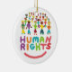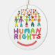 Human Rights design shows a variety of people celebrating humanity, friendship and equality, with a large "Human Rights" slogan below. A clear message of support for a fair world.