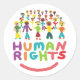 Human Rights design shows a variety of people celebrating humanity, friendship and equality, with a large "Human Rights" slogan below. A clear message of support for a fair world.