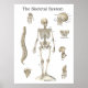 Human skeletal system chart. Shows the skeleton, lateral view of the skull, spine, sacrum, pelvis, bones of the hand and foot. Vintage 1894 images. Nice anatomical artwork for a doctors office.