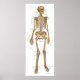 Human skeleton anatomical poster. Anterior view of the bones of the body with ligaments and tendon attachments of the joints. Bones and sutures of the skull. Bones and ligaments of the hand, foot, shoulder and pelvis.