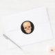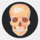 A stylised graphic representation of a human skull in pop art colours of orange, red and blue.