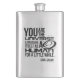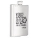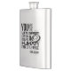 The product is a good size and came exactly as it was pictured. The lid is not attached to the flask, which could be dangerous on drunken nights... The print came out surprisingly well and looks very sharp. Would definitely recommend.