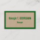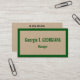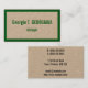 This simple, humble, and plain business card design features a name, profession and contact info that can be customised. It also features a green coloured border on the front. Business cards such as these might be used by a professional such as a freelancer, an engineer, or a doctor.