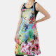 A spectacular apron with a beautiful watercolor painting of hummingbirds flying among colorful flowers.  A one of a kind apron that's perfect for gardening or a any other activity.