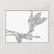 This beautiful black and white line drawing is ready to be coloured in, for a unique DIY greeting card. This card features an intricate design of a hummingbird and flowers, on white matte paper. The colours are up to you!
