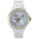 This is a Unique "One of a Kind" Hummingbird and Flower Women's Watch! It Features an Adorable Hummingbird Sipping Nectar from Beautiful Pink & Purple Flowers on Pink and Purple Cloud Background!