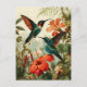 "Embark on a journey into nature's vibrant palette with our Vintage Hummingbird Postcard. This captivating piece features a kaleidoscope of hummingbirds gracefully dancing amid colourful blooms. The intricate detailing and soft hues transport you to a timeless garden, where these delicate creatures flutter alongside vibrant flowers. Send a heartfelt note or frame it as a miniature masterpiece, allowing the enchantment of hummingbirds and the beauty of nature to brighten any space."
