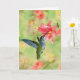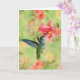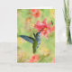 Hummingbirds are fun to watch as they flit from flower to flower in the garden with their wings beating at a furious pace. I've illustrated this hummingbird in a linear style approaching a pink lily blossom and set the subjects against a soft green floral print fabric design.