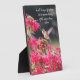 Decorative plaque with hinge that features a 5 x 7 inch, glossy photo image of a tiny Hummingbird in flight over pink Bee Balm flowers, along with a philosophical wisdom quote by the historian, Aristotle, that reminds us of how marvellous nature is.