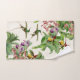 Gorgeous collage of vintage botanical fine art of tropical Hummingbird Birds and Ladys' Slipper Orchid Flowers and Palm Frond Leaves is on this Floral Bath Towel Set. Vintage images are public domain due to expired copyright. Collage is by me.