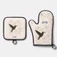 Hummingbird Botanical Personalised Kitchen Oven Mitt & Pot Holder Set