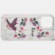 Personalise this Unique "One of a Kind" Hummingbird iPhone Case! It Features an Adorable Hummingbird Sipping Nectar from Large Pink & Purple Flowers....on a Stressed Wood Background!
