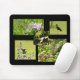 Five separate photos of hummingbirds in my garden combined on a black mousepad.