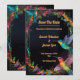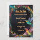 Celebrate your special day with this elegant wedding invitation featuring two vibrant hummingbirds in mid-flight, surrounded by lush tropical flowers and delicate foliage. The dark botanical background adds a touch of sophistication, while the intricate floral border with rich hues of blue, red, and orange creates a striking contrast. Accented with a subtle gold frame, this design exudes romance and timeless beauty, perfect for nature-inspired, garden, or tropical-themed weddings. Let this exquisite artwork set the tone for your unforgettable celebration.
