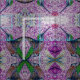 This fabric has a purple kaleidoscope of hummingbird energy formed by bright colours and mirrored scribbles.