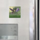 A stunning hand painted image of a hummingbird feeding on a purple flower bloom on a 2" square magnet. What a colourful way to brighten any room or decor. Quality discounts always available. A great gift idea! Thank You for shopping at HUMMINGBIRDHEAVAN and please bookmark this page for future reference.