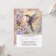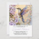 A delicate watercolor illustration featuring a graceful hummingbird in mid-flight, surrounded by blooming lavender and blush flowers. The bird’s iridescent wings shimmer with shades of lilac, blue, and soft gold as it hovers gently against a warm, pastel sky. Flowing florals frame the scene, creating a romantic, airy atmosphere that evokes love, joy, and new beginnings. The back of the card is a variation of the front. Personalize with your own information.