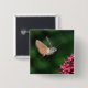 A close up photo of a european day-flying hummingbird hawk-moth, with orange underwings, hovering and feeding at deep cerise red valerian flowers against a soft focus dark green background. For the scientifically minded, this fascinating moth is Macroglossum stellatarum and the flower is Centranthus ruber.