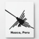 Famous Nazca Lines hummingbird in black with text. Image from the Nazca desert, Peru.