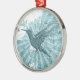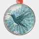 This ornament features a blue hummingbird on a blue abstract background.