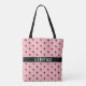 Hummingbird silhouette pattern on black and coral pink Tote Bag. Text can be personalised.