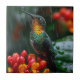 A vibrant hummingbird showcasing shimmering plumage perches on a bright flower during a gentle rainfall. Nature's beauty and serenity are captured in this colourful and vivid moment in the rain.