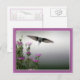 This card features an unique photograph of a hummingbird hovering over a flower.