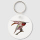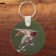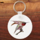A male ruby throated hummingbird stretches as it sits on its perch.