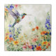 Watercolour Hummingbird amongst the flowers